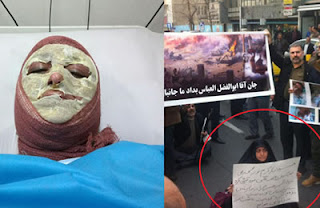 بیوه یک پاسدار که در جنگ ایران و عراق کشته شده، روز۱۵ اسفند خود را در مقابل بنیاد شهید در تهران به آتش کشید